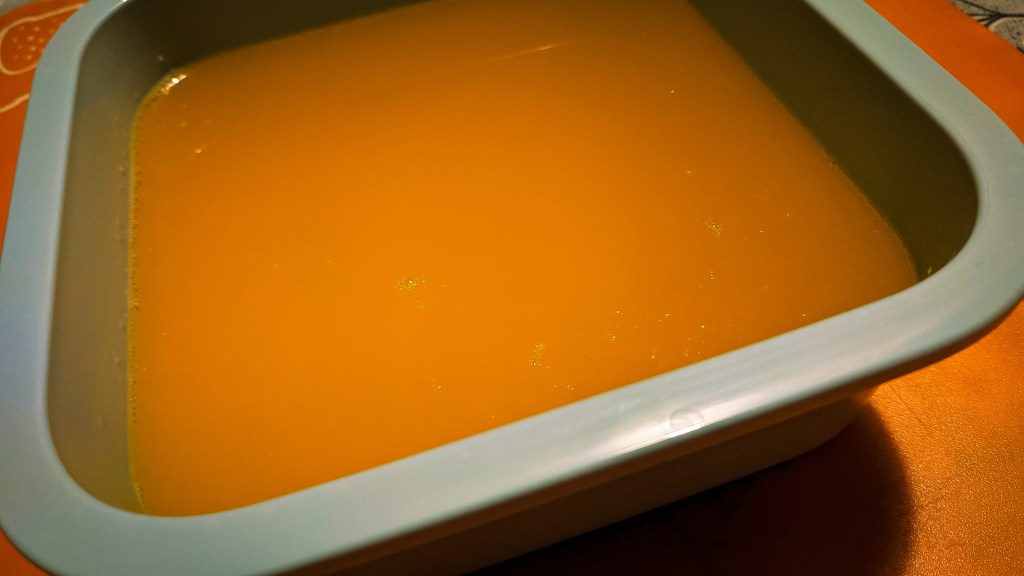 Mniej więcej po pół godzinie, kiedy masło będzie żółte oraz lekko przezroczyste, filtrujemy je ( przez gazę lub przez sitko).