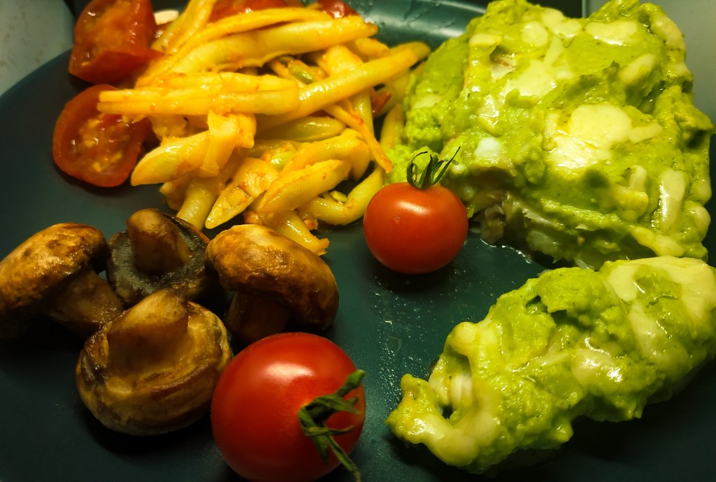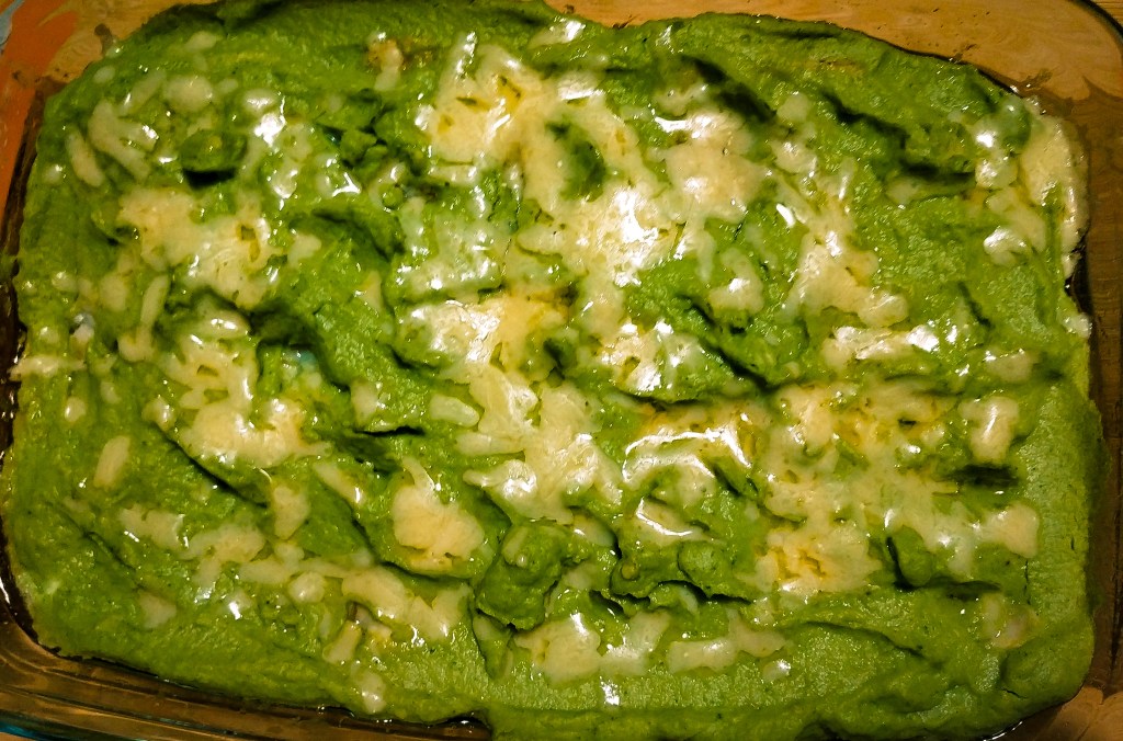 Po wyjęciu ryby, smarujemy pastą brokułową i posypujemy serem. Zapiekamy bez przykrycia kolejne 8min.