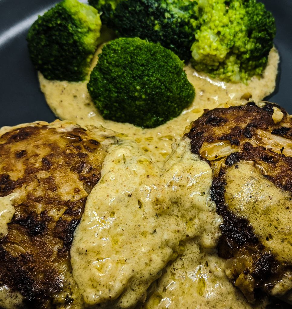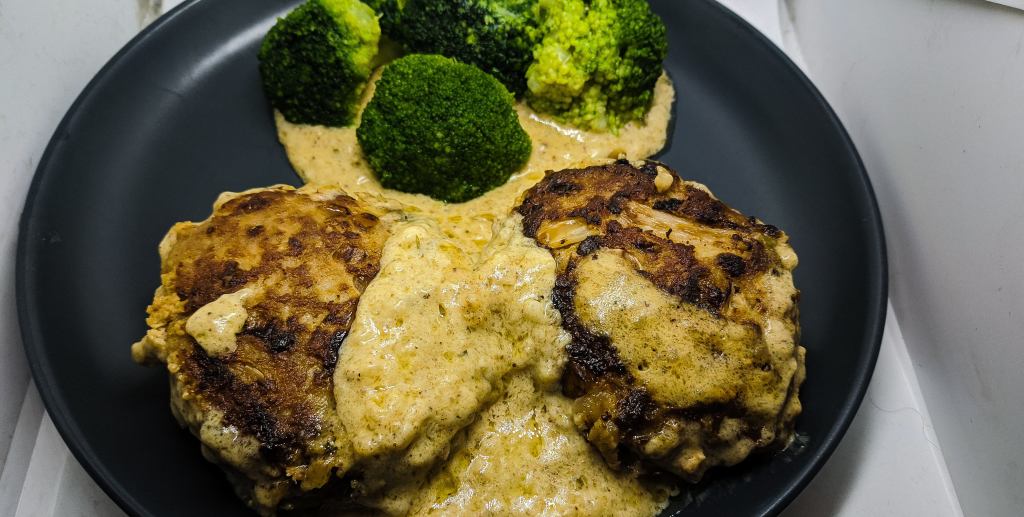 Gorący bulion mieszamy z musztardą, śmietaną, gumą i przyprawami ( ja dodałem jeszcze tłuszcz spod mielonych). Przelewamy na patelnię, wkładamy kotlety i chwilkę dusimy na małym ogniu.