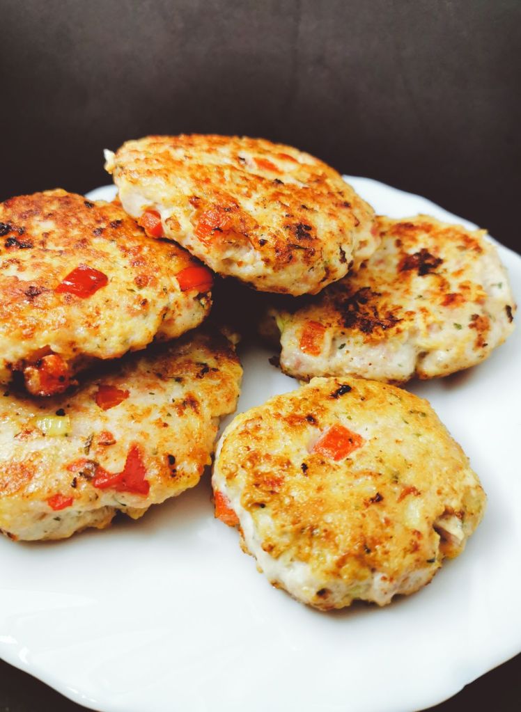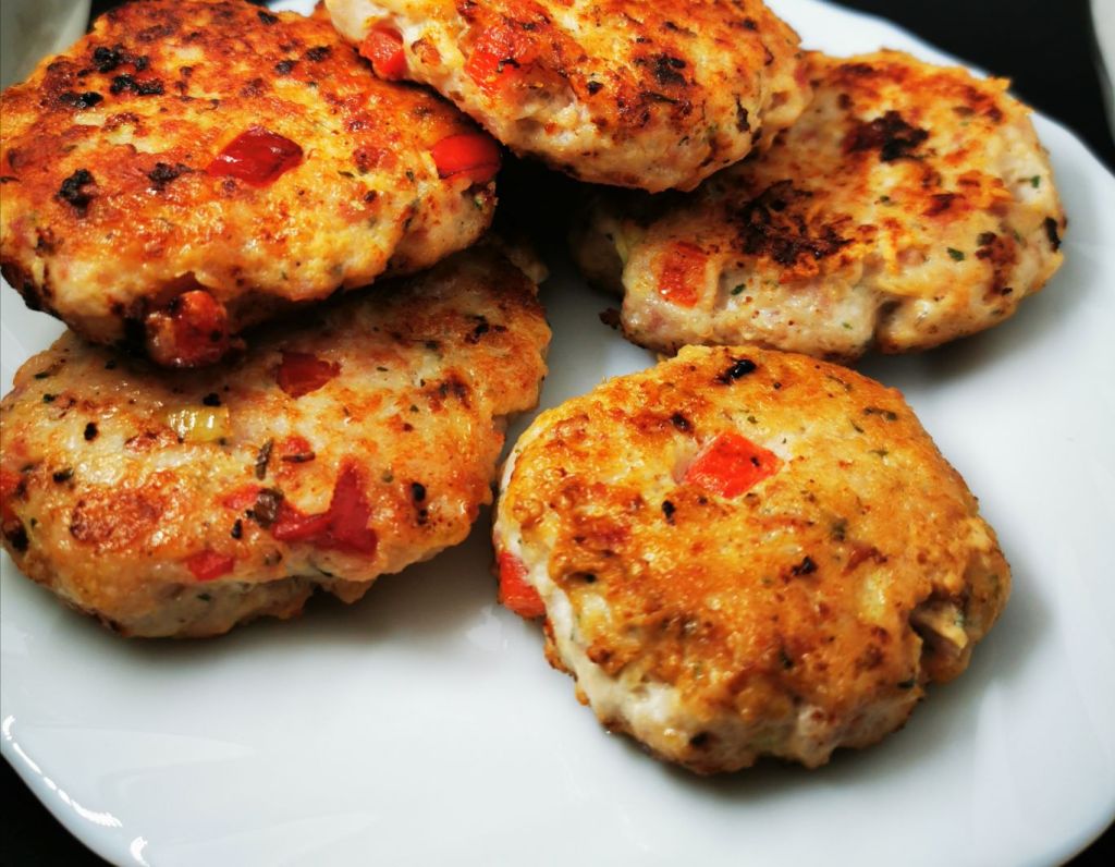 Dodać jajko, paprykę pokrojoną w kostkę i przyprawy. Dokładnie wymieszać i uformować kotleciki.