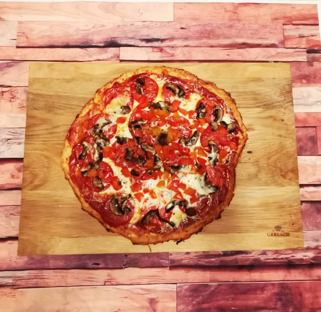 Blat wyciągamy i studzimy przez chwilę. Dodajemy ketchup, ser i dodatki. Zapiekamy kolejne 10 minut.